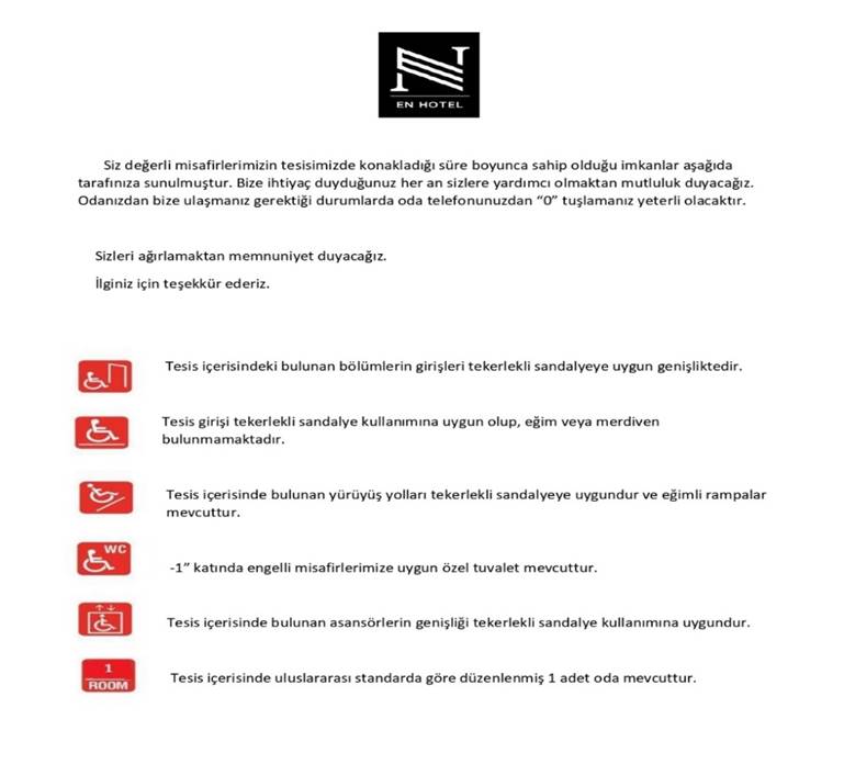 EN Hotel olarak önceliğimiz, misafirlerimize en yüksek standartlarda hizmet sunarak unutulmaz bir konaklama deneyimi yaşatmaktır. Bu doğrultuda, kalite ve konforu esas alan temel prensiplerimiz doğrultusunda hareket ediyoruz.
